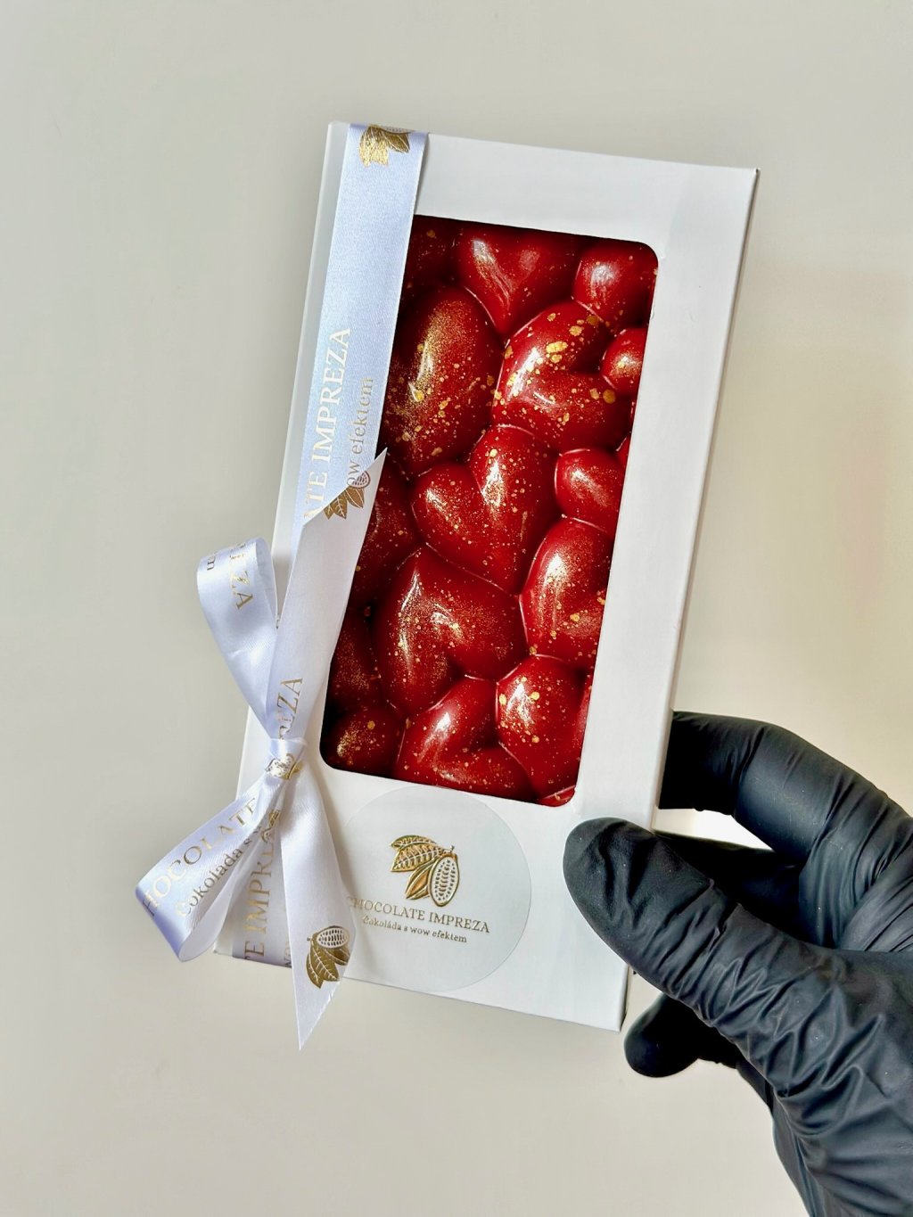 Čokoládová tabulka Srdíčka s jahodami a mandlovou pastou